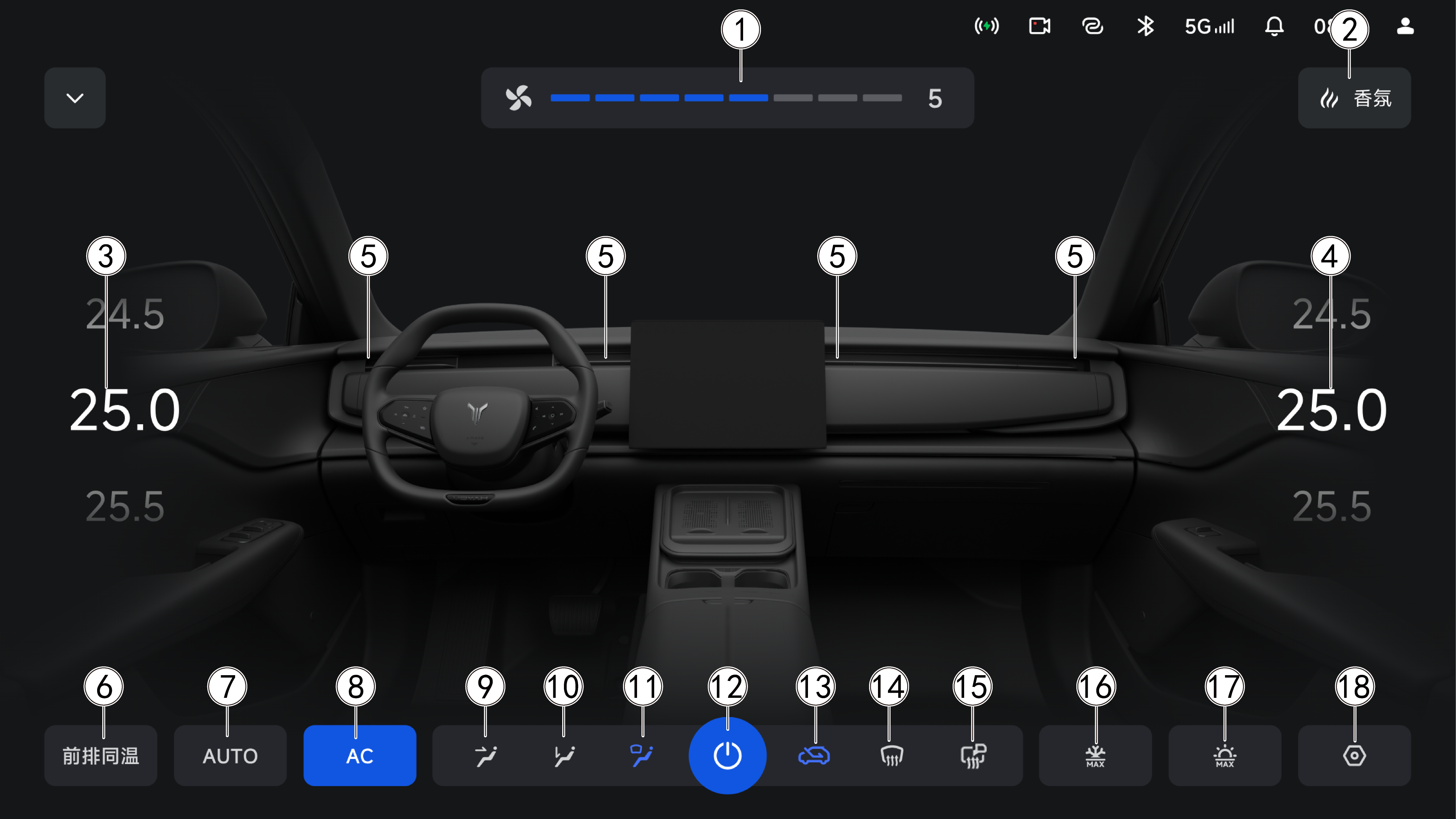 - AUTO 自动空调模式下,可支持副驾温度调节。