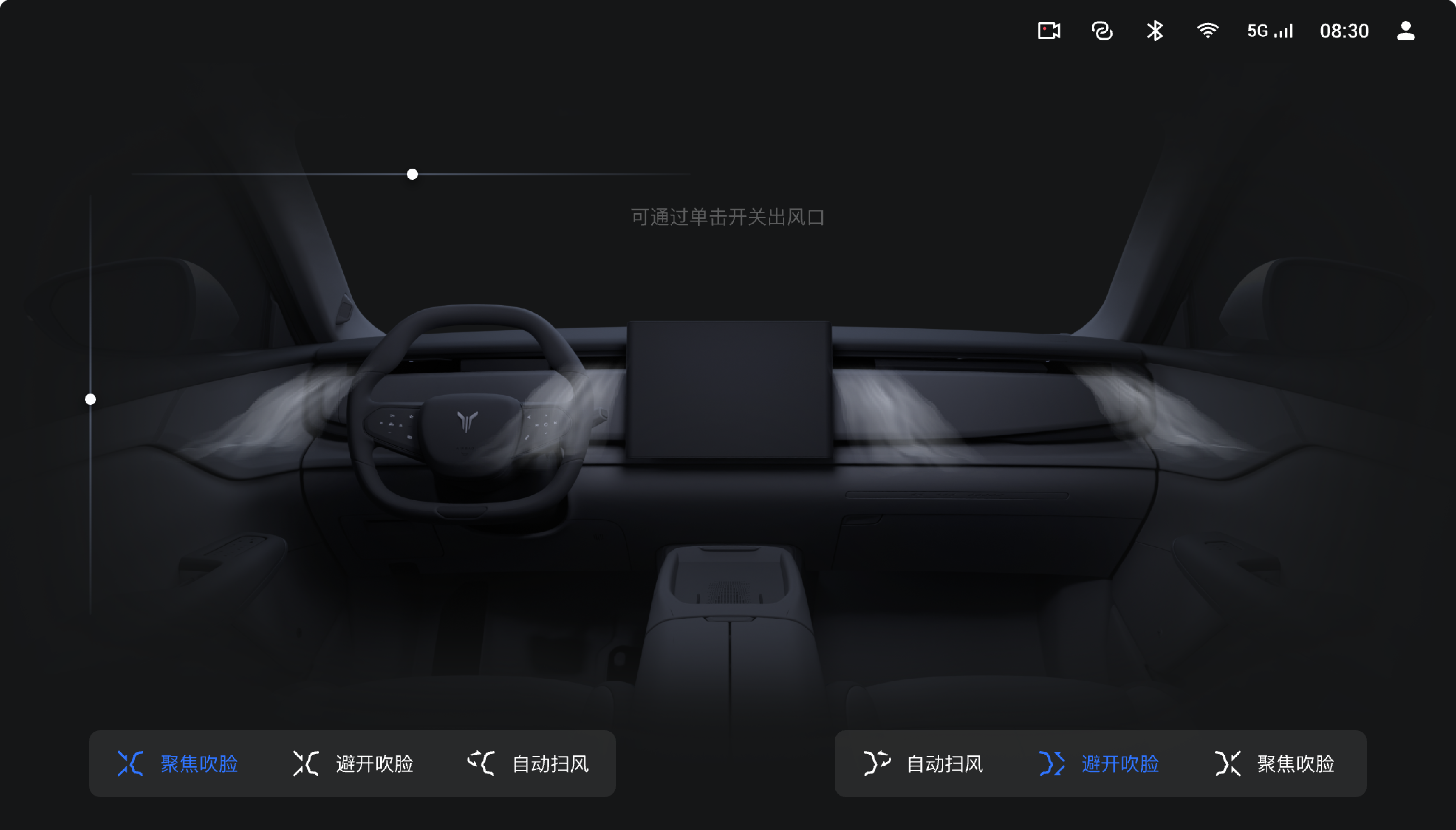 - 点触出风口区域可开启 / 关闭对应出风口;