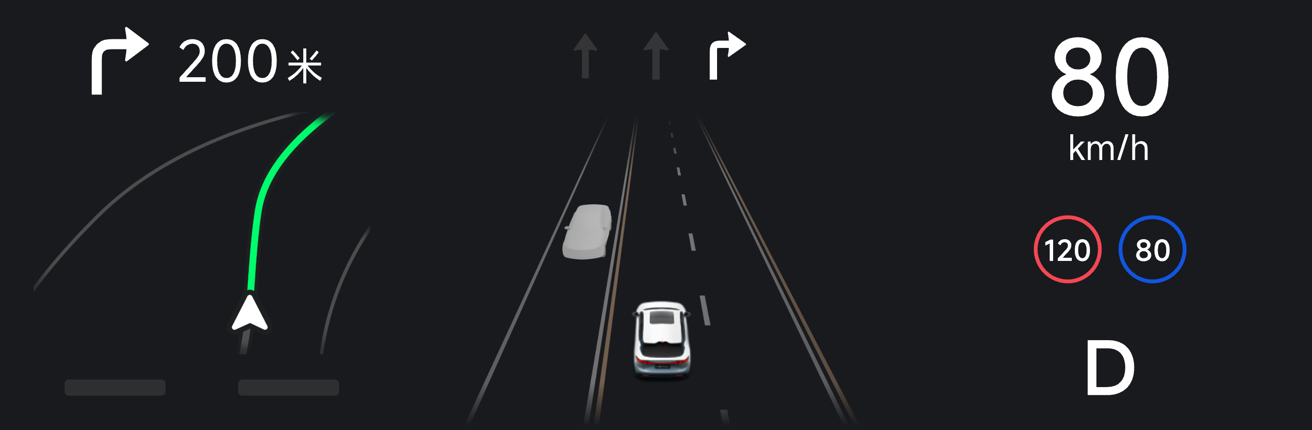 - HUD处于极简或导航模式时,开启驾驶辅助功能后,HUD会自动切换为驾驶辅助/标准模式;关闭驾驶辅助功能后,恢复为原来的模式。