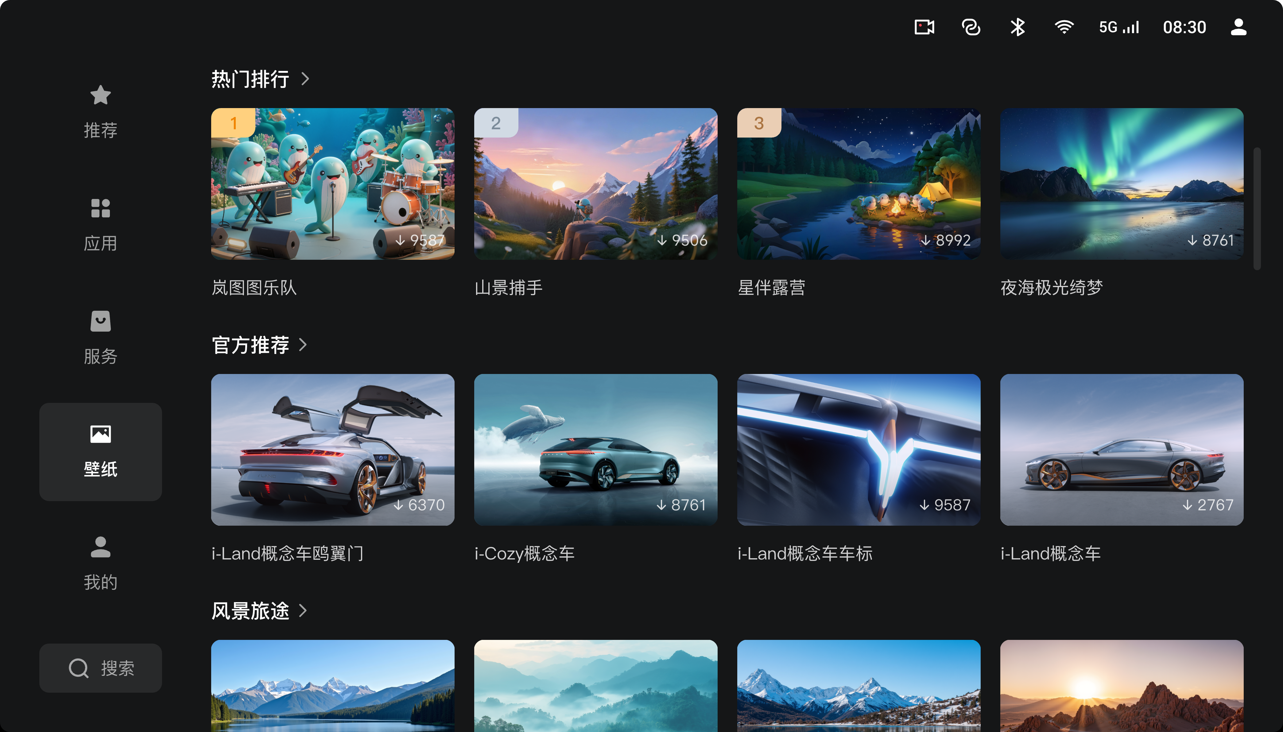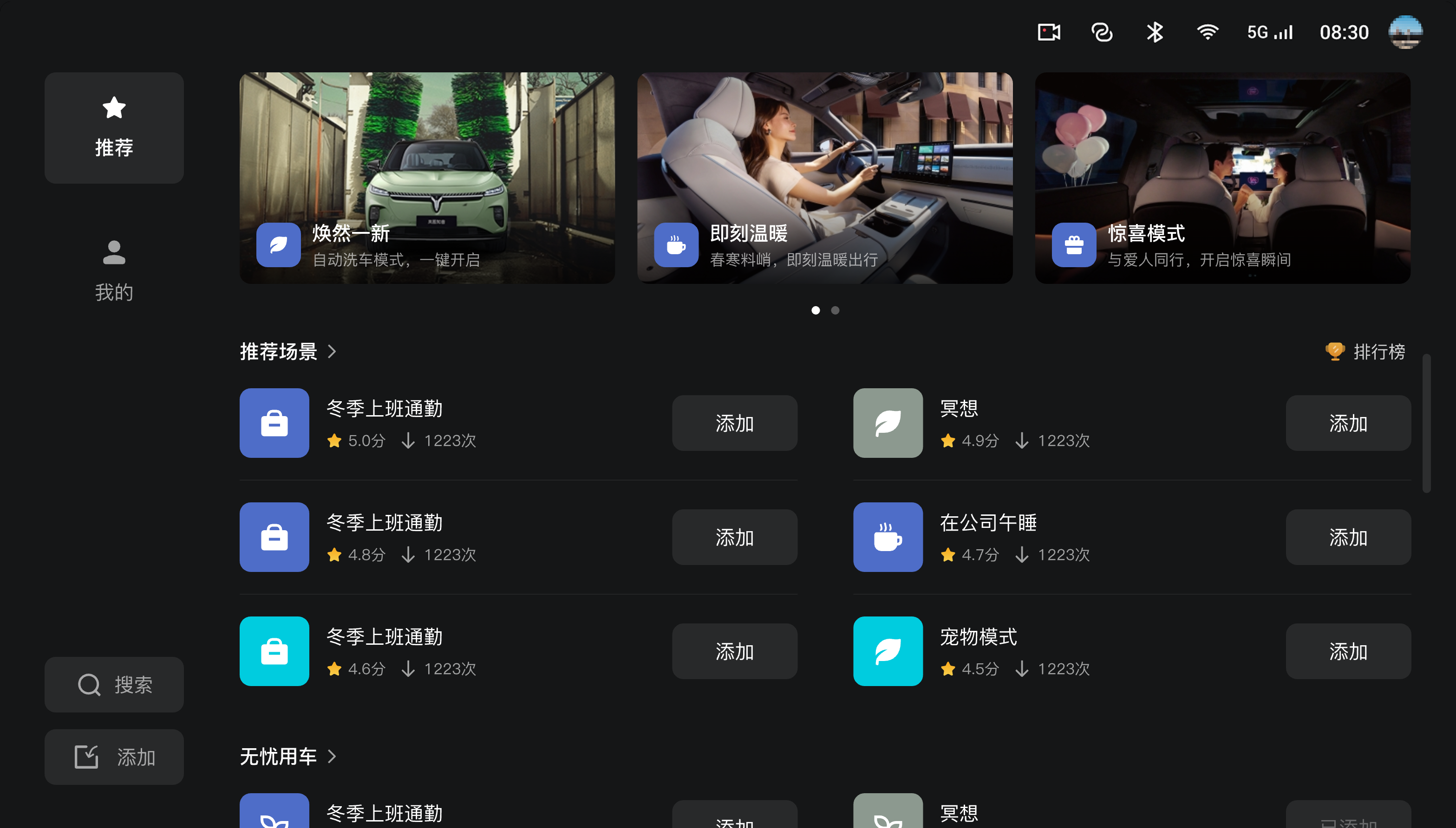 - 导航、音乐、天气及里程信息等功能卡片(长按卡片进入卡片编辑界面)